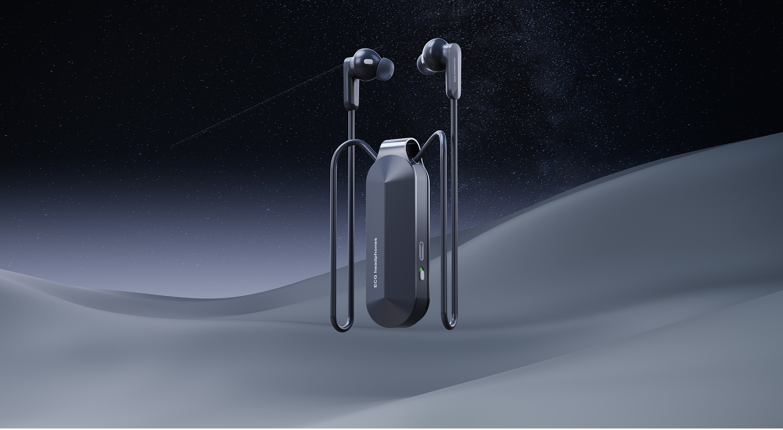 这款心电监测耳机将健康监测与音频体验结合,通过创新的工业设计实现了功能性与时尚感的完美平衡。其设计不仅注重便携性和人体工学,还突出了科技感与未来感,为用户提供舒适、精准和高效的健康监测和音频体验。